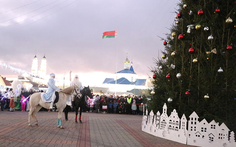 В чудесный сказочный вечер главные персонажи новогодних праздников зажгли с ошмянцами огоньки на красавице-елке.